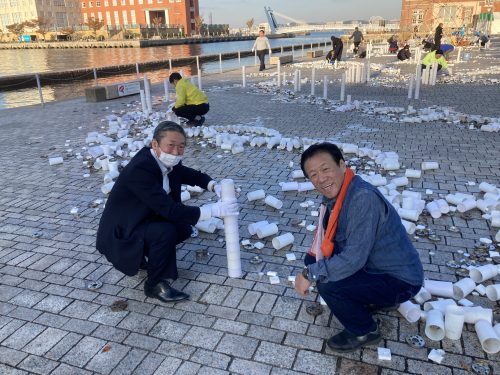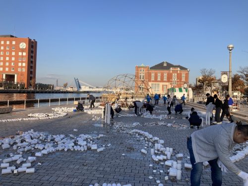 昨夜まで開催された関門海峡キャンドルナイトの後片付けの