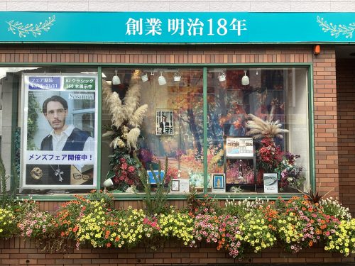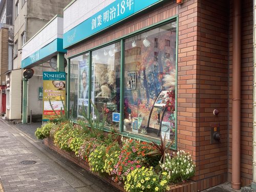 ウインドの中の花は造花ですが、店頭の花は生花でやはり